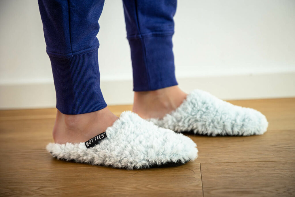 Genähte Hausschuhe aus Plüschstoff