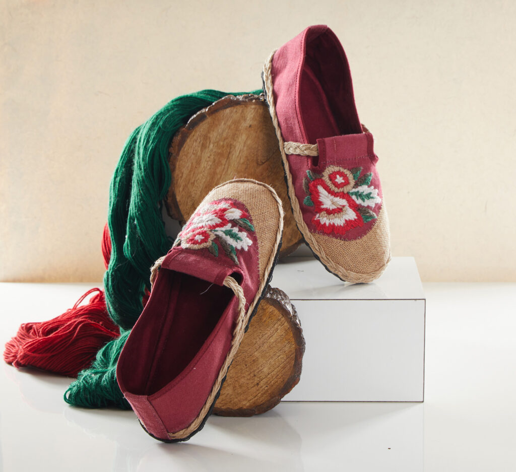 Sommerliche Espadrilles mit Jute und Blumen-Stickerei.
