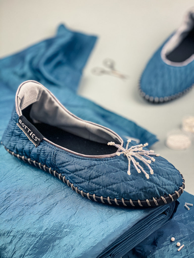 Schick mit Taft: diese Ballerinas mit der feinen Absteppung und einer Perlenapplikation sind absolut ausgehtauglich!